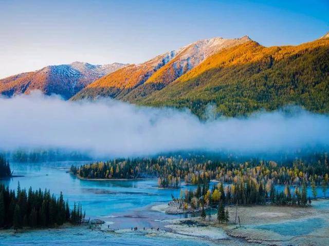 2、喀纳斯湖:喀纳斯湖位于新疆阿勒泰地区,被誉为“人间仙境”,湖水清澈见底,四周环绕着雪山、原始森林和草原,景色如画。